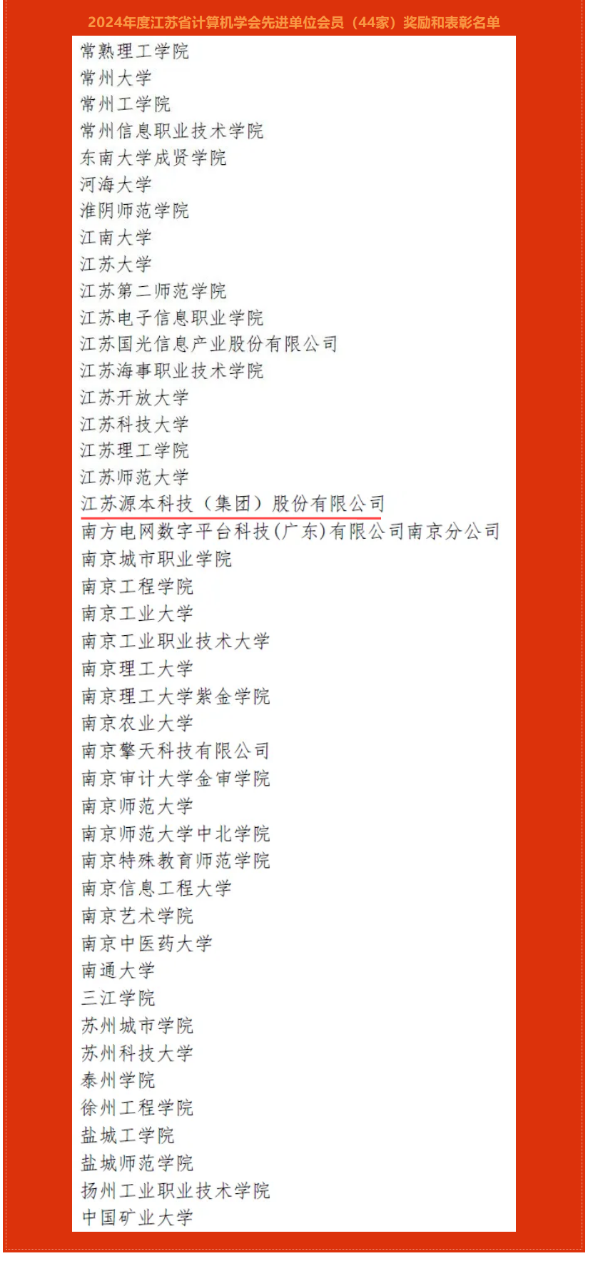 荣获江苏省计算机学会2024年度先进单位会员